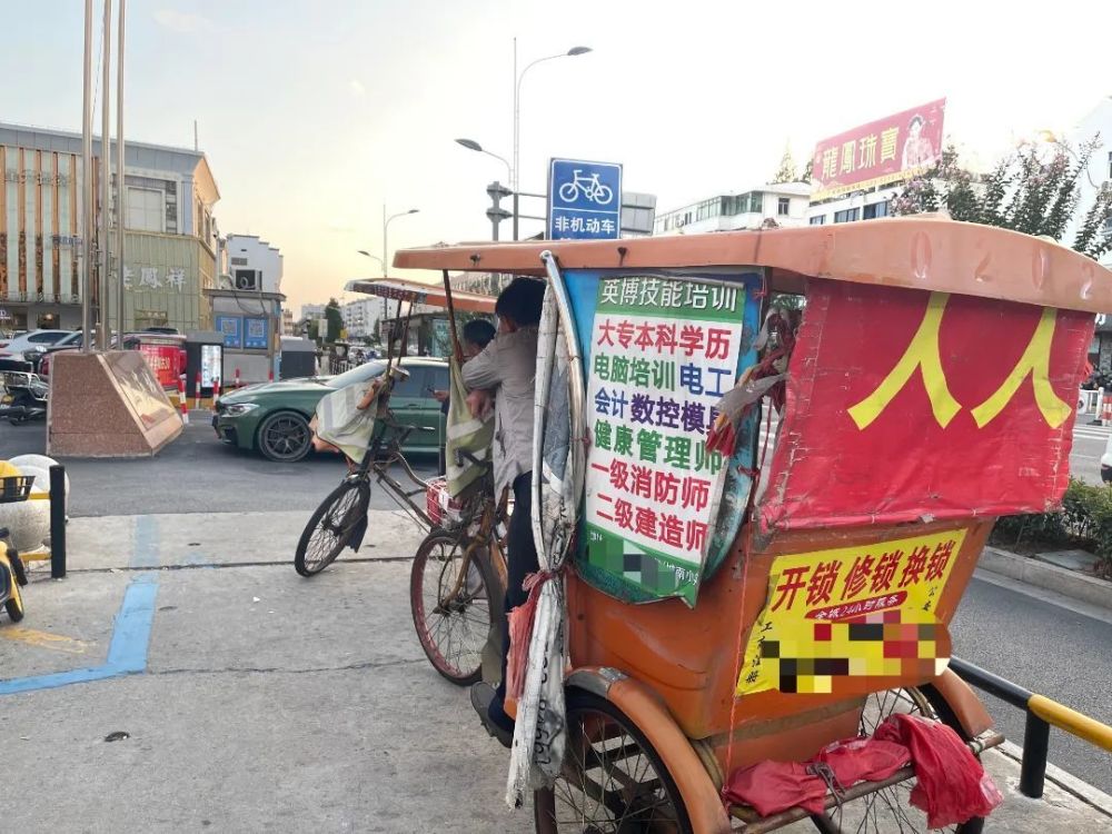 而旁边刚赶到等待揽客的另一辆三轮车师傅,只笑了笑。三轮车在一众电动车、共享单车旁,已有了“过气”的叹息,但仍有不少人赖以为生。