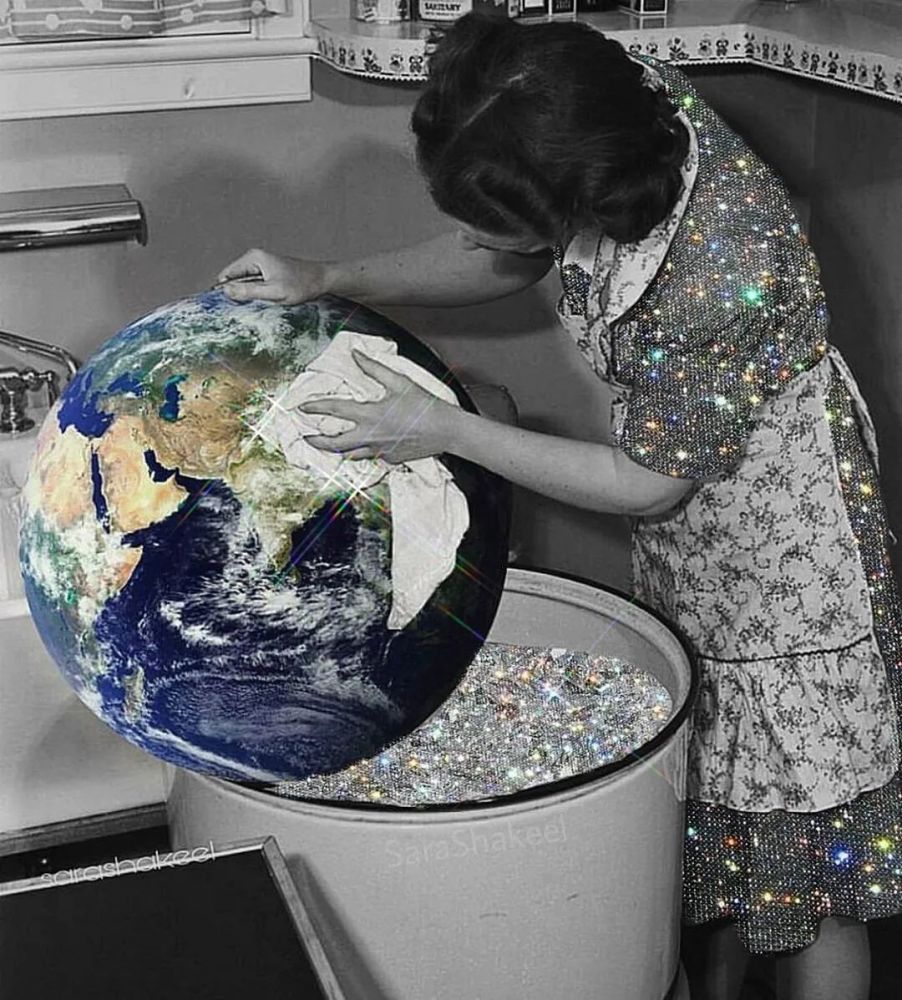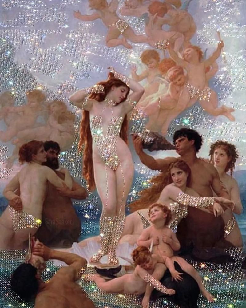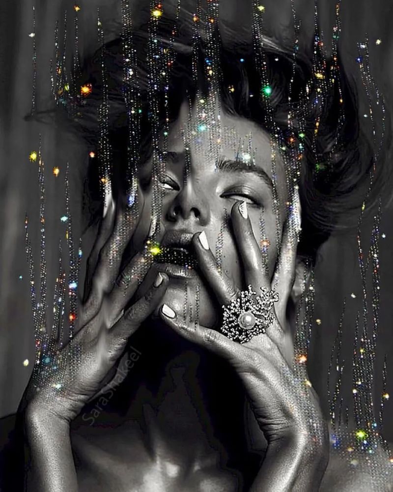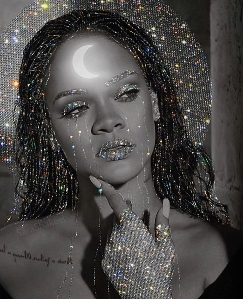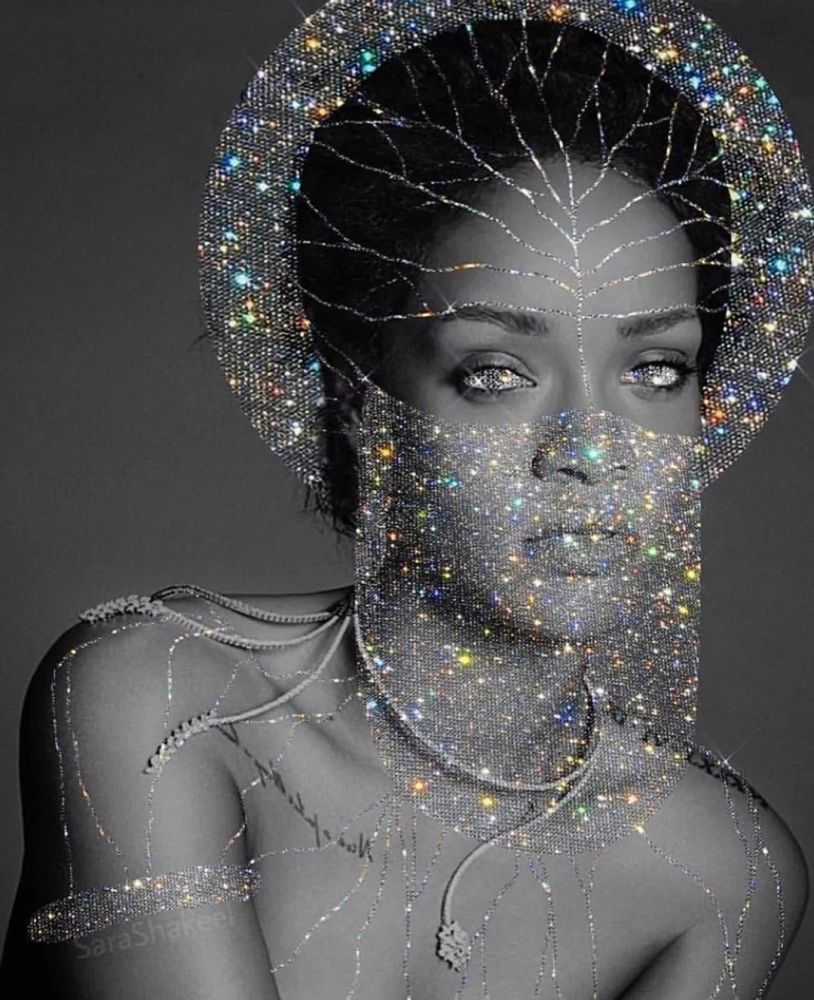 她的拼贴画像是一个闪烁在尘世中的绝对梦幻,到处都充满了水晶与钻石的光泽。