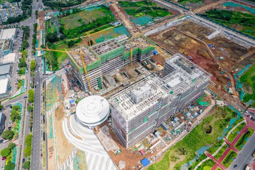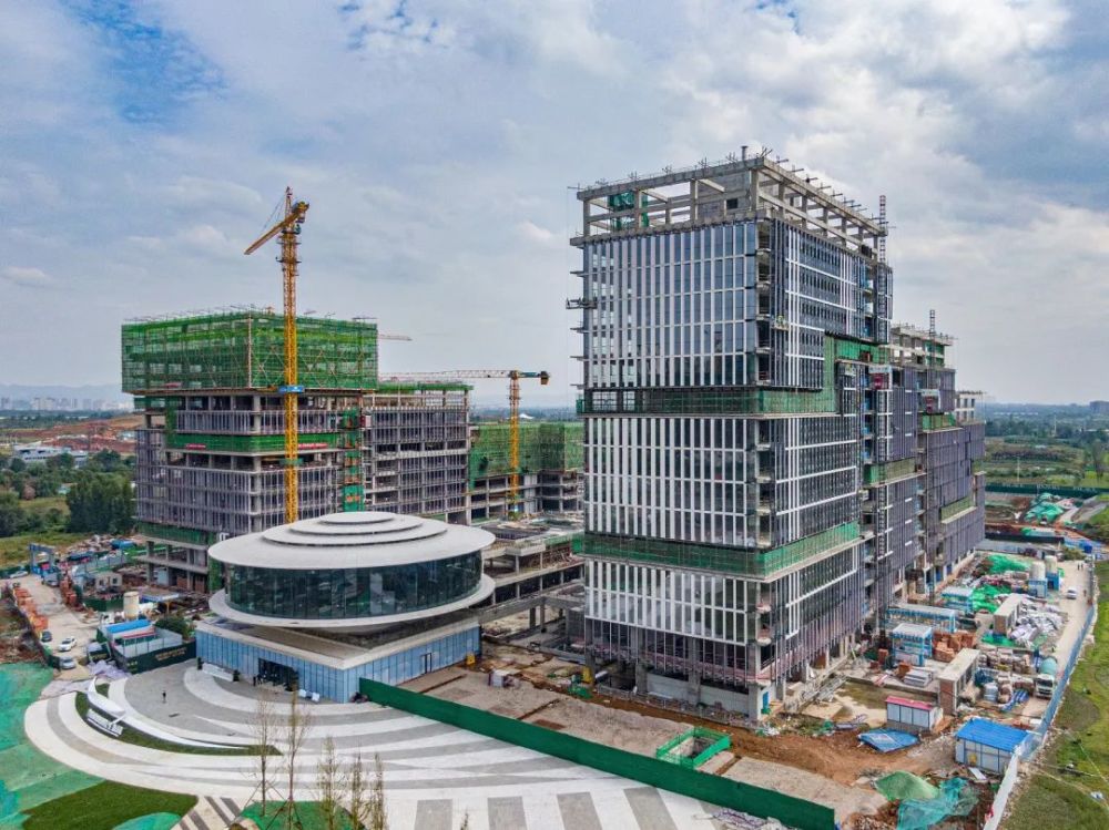 距离公园不远处,白鹭湾未来公园社区建设正如火如荼,一辆辆货车将材料运进工地,一座座塔吊将建材运往高层,在建设者的密切合作下,未来公园社区内的白鹭湾科技生态园已完成主体建设。