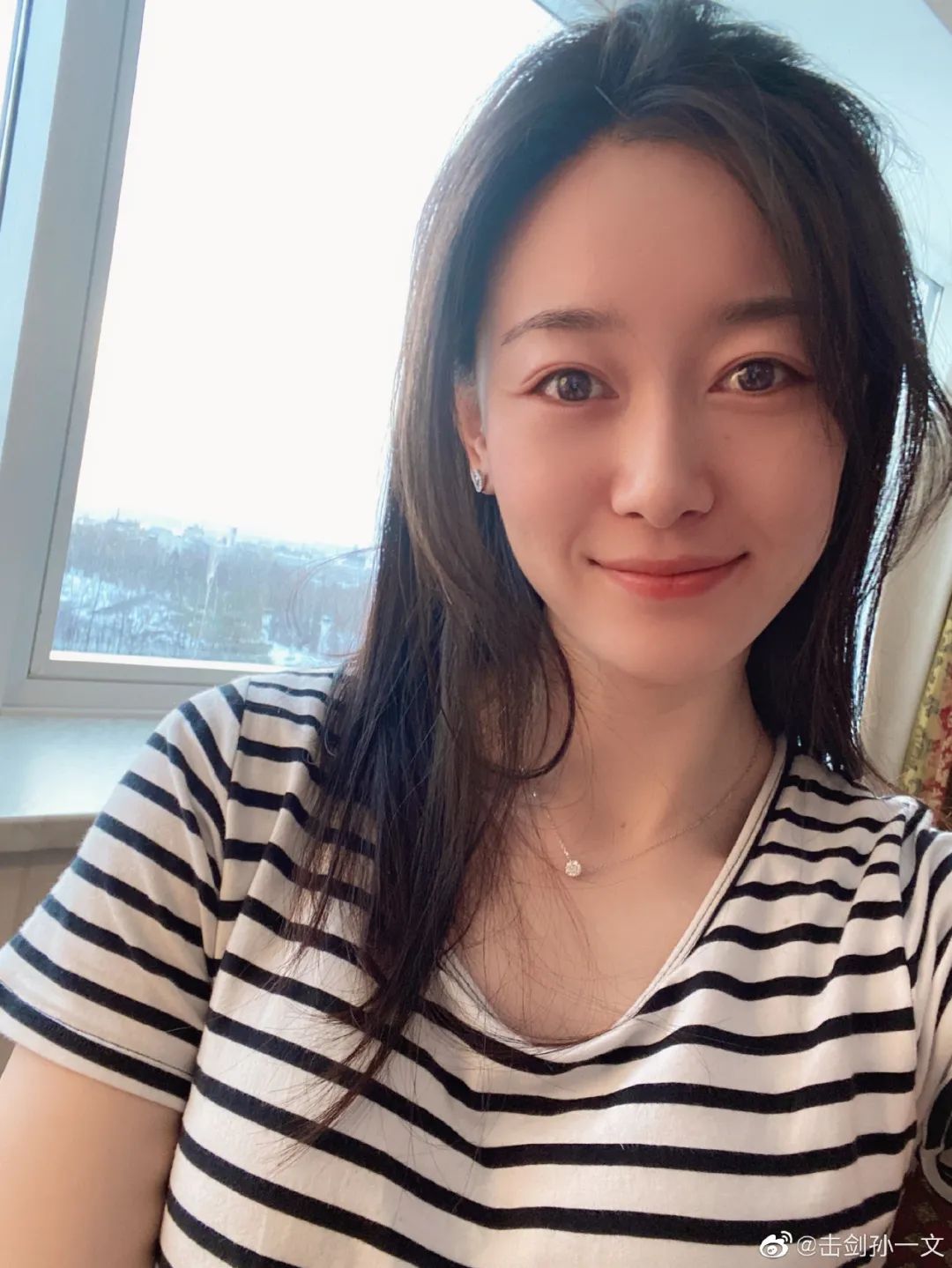 卸下浓妆的她颇有邻家女生的感觉,皮肤保养得也极好。