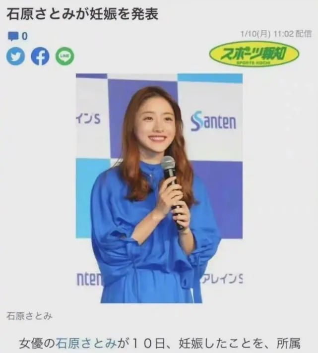 35岁石原里美透过经纪公司发声明宣布怀孕