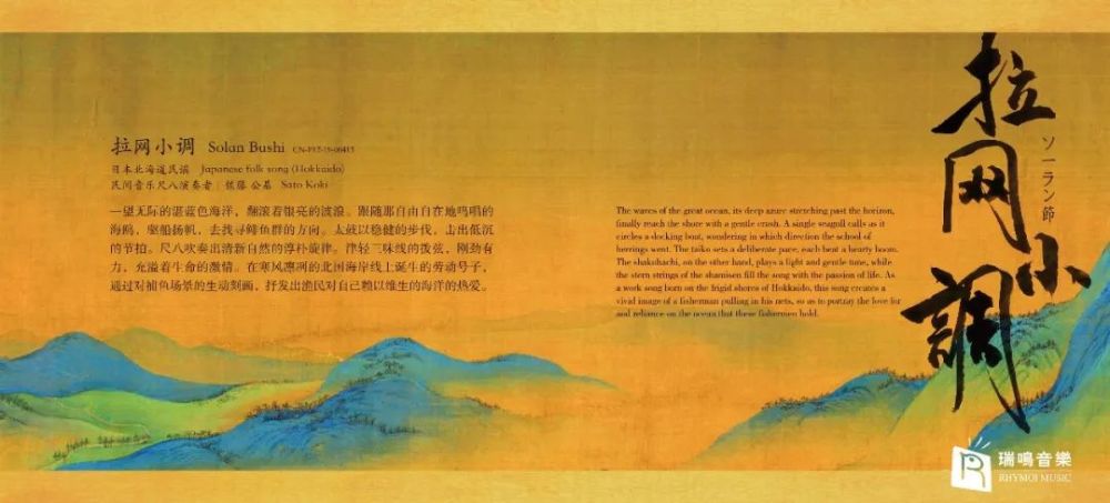 以音乐讲述慷慨苍凉的历史故事,和悠远壮阔的乡野传奇。在创立著名独立音乐品牌Rhymoi music十五年之际,创始人、音乐制作人叶云川深入中国、日本古典千年传统,在历史长河中自由幻想,邀请中国、日本演奏家以高超技艺即兴合奏,经久流传的两国传统民谣,于东京1200座位的音乐厅,高品质录制出这个作品,完成两种传统文化以音乐的方式做的深刻交流。
