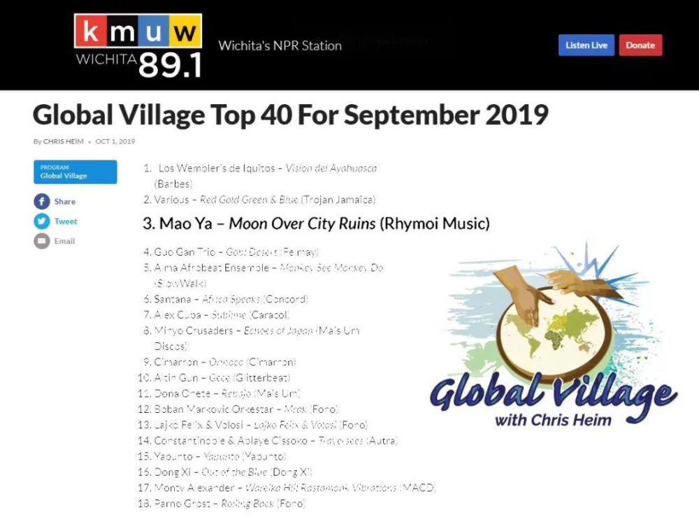 在荣获全球节奏/CIUT89.5FM九月排行榜前三名后,
