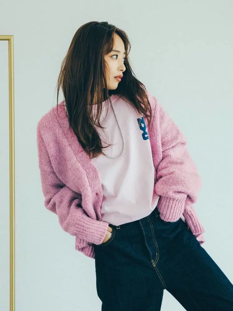 深粉×浅粉的上衣组合少女与成熟并存,甜而不腻风味绝佳,搭配牛仔裤展现出日式专属的文艺风格。