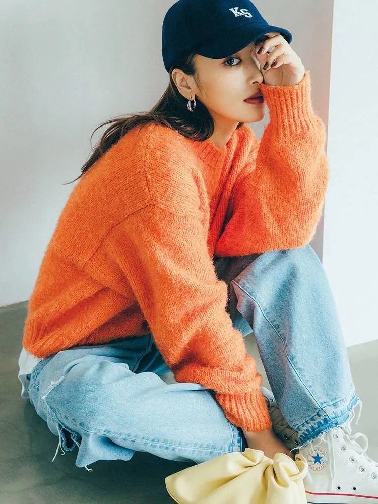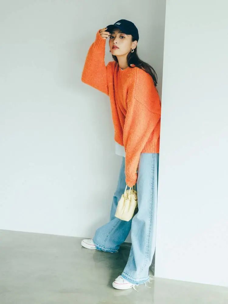 大冬天的,满街黑色大衣凝结成黑压压的一片实在令人审美疲劳,这时候穿一件热情的橘色毛衣,哪怕只是上衣而已,都会让人眼前一亮,脱颖而出。