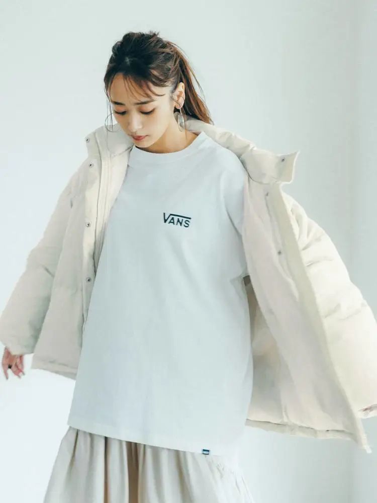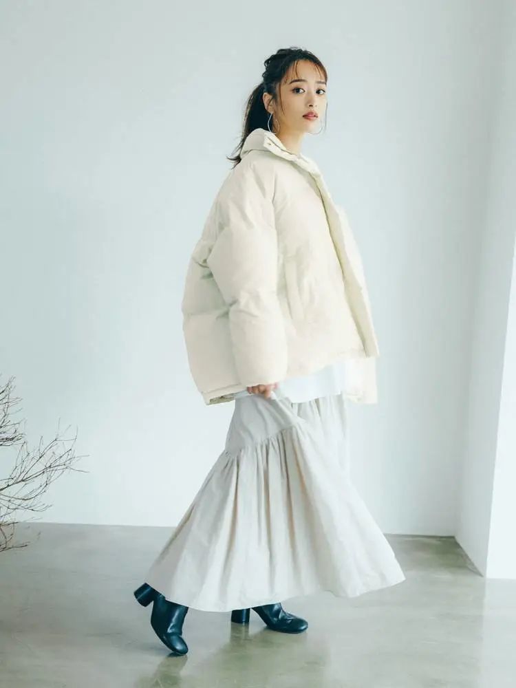 没有人不会穿白色羽绒服,然而能否穿得出彩又是另一回事。用白色内搭+米色半裙去搭配同色系的白色羽绒服,打造出冰天雪地中的晶莹剔透梦幻风格,诞生出只属于自己的时髦。