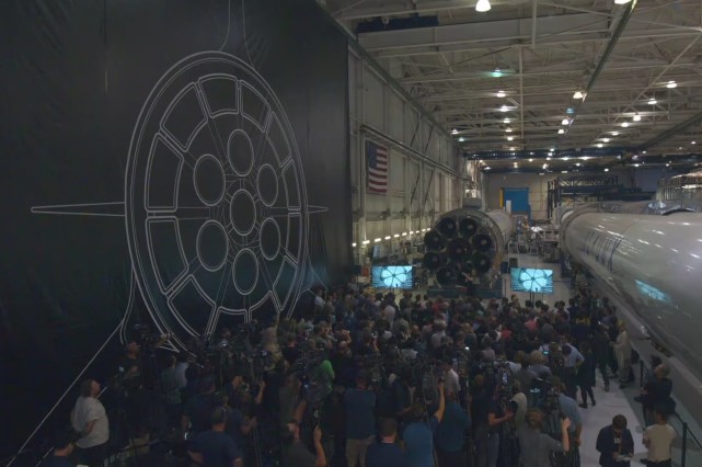 马斯克补充说:“我的意思是,这是个大得离谱的火箭。”他指出,墙上的插图与航天器实体大小相同,正如你所看到的,观众和其他火箭在它面前显得微不足道。至于里面装了什么,这取决于任务。