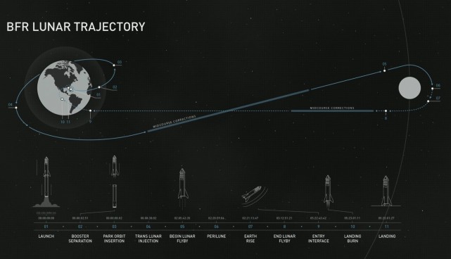 围绕月球飞行的计划相对简单,就像月球发射任务那样:发射——进入地球轨道——启动引擎向月球飞去,利用月球引力回飞,然后重新着陆。但确切的路径还有待确定,马斯克有自己的想法。