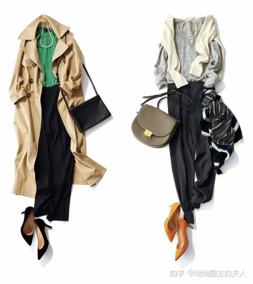 在emiri的日常搭配里还可以看到一衣多穿的经典案例。比如还是这件风衣,稍微做一些内搭上的调整就是另外一种风格。比如这一套风衣穿搭,内搭换成了很有春季氛围的单品绿色的针织衫,配上一条很古典的珍珠项链,立刻成为了优雅的职场女精英式的穿搭,还有加入了更职业的黑色跟鞋,是不是成熟女职场人的标配。