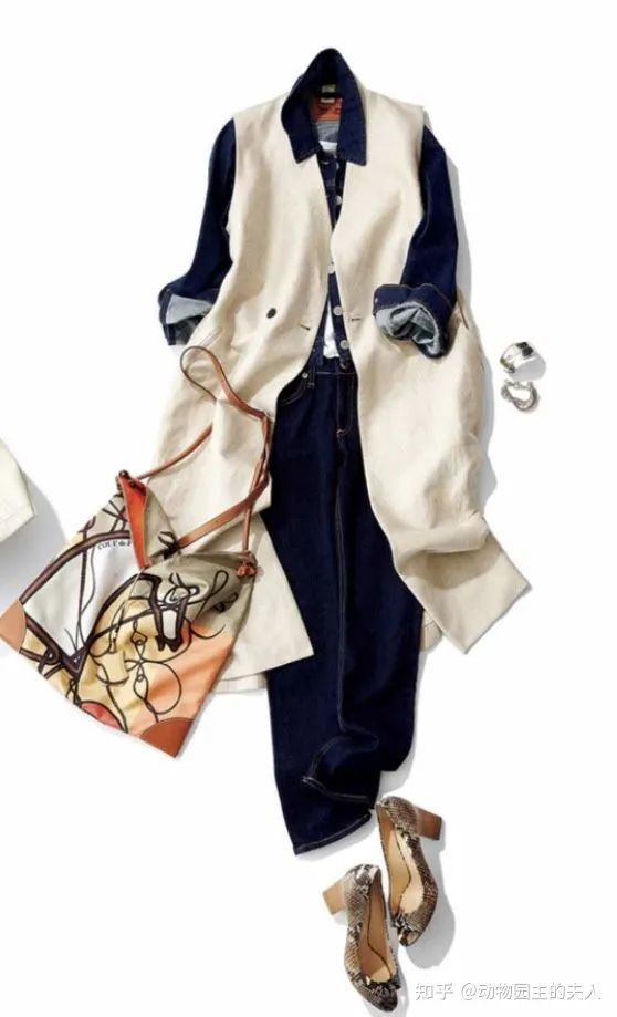 上面两套搭配是Emiri的那件藏青色的牛仔外套,其实配色很容易拷贝,就是明暗色互相搭配。比如第一套虽然都是暗色的一套,但是她外面叠穿法加入了一件米色的长款马甲,更有层次感。