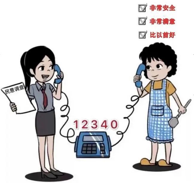 如您接到“12340”的来电,请您及时接听,且不要挂机。电话接通后,调查人员首先会了解您的年龄、居住地等基本信息,然后让您对当地平安建设情况进行评价,请您准确给出自己的满意分数如“10分”,或者直接回答“安全”“满意”,切记不要说“还可以”“将就”“还行”等模糊语言,以免测评人员产生误判。