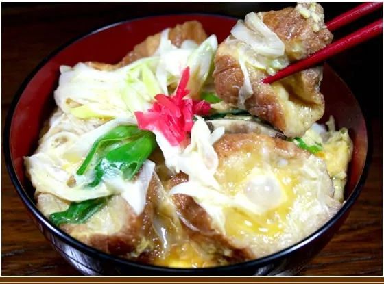 油麩它在宫城县和东北地区是一种很受欢迎的食材。其实油麩盖饭就是用猪油代替炸猪排使用的食用油烹制的,而且他还是种很健康的食材,具有调节肠胃的功能。
