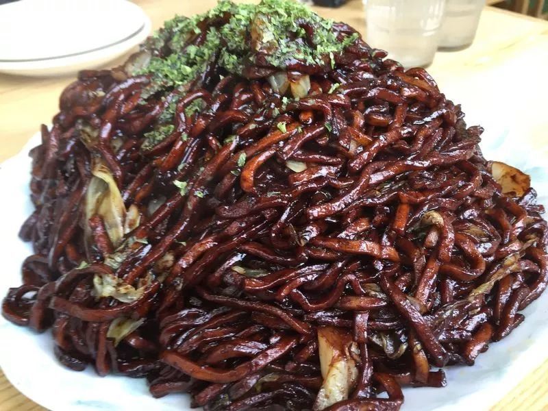 不仅仅使用了口感很好的粗面,还加入了浓厚的酱汁,呈现出的“酱油”深色是太田炒面的特色!不要看他颜色很浓郁,但是吃上第一口的时候你就停不下来啦~