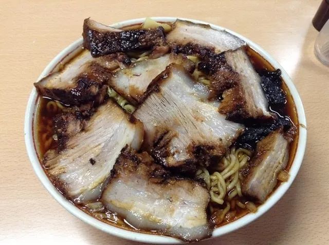 竹岡拉面里的汤汁添加了甜甜的酱汁,放上满满的叉烧肉,叉烧肉的油汁搭配着酱汁,再撒上一把葱花与普通的拉面口感大不相同。