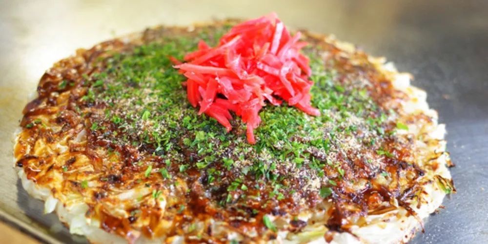 静冈县西部人民最喜欢吃的文字烧,店家特制的食材,和红姜丝,小葱一起搅拌放入面糊煎烤而成。