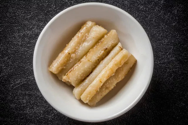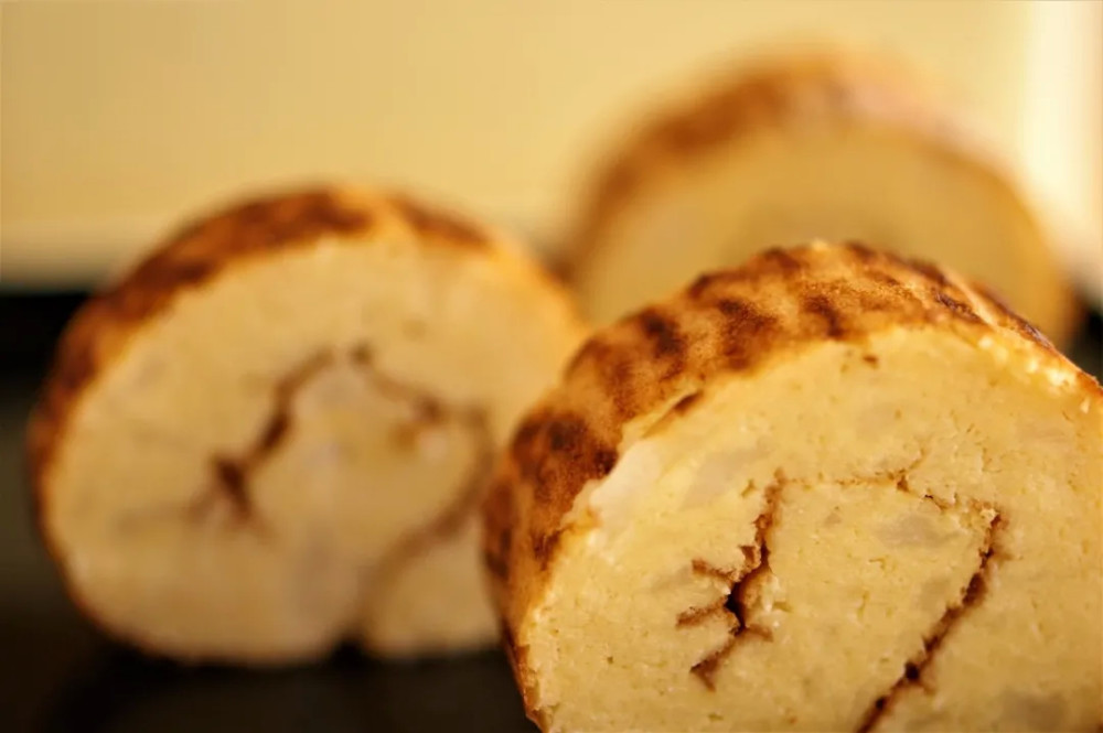用鸡蛋做的,味道甜甜的很像是那种Q弹的蛋糕。因为它的形状很像书卷,因此包含了希望知识变丰富,学业有成的寓意。另外,“伊達”是表示时尚和华丽的词语。