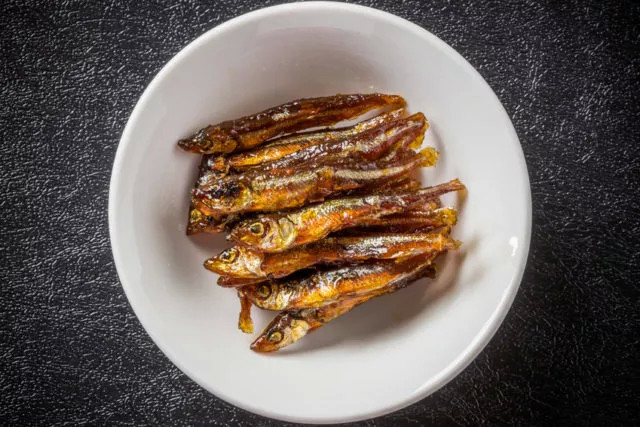 将沙丁鱼炒到干燥后加入酱料,营造甜辣的口感。因为之前人们是将这种小鱼用作肥料使用,因此把小鱼干加入年节菜中,有祈祷“五谷丰登”的寓意。