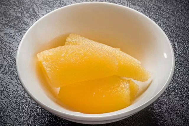 用酱料腌渍过的呈现为黄色的生鱼片的鱼卵,放在年菜里,有祈求子孙繁荣的含义,同时也包含了希望“夫妻关系圆满”的愿望。