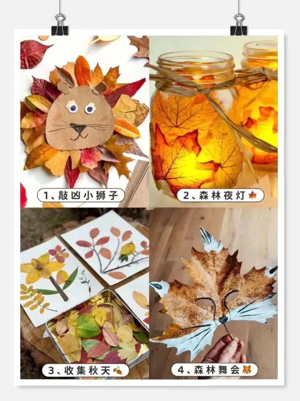 ● 要求:捡一些树叶,并做成一些小手工作品,和自己的作品拍张照,一起装扮最美的秋天!