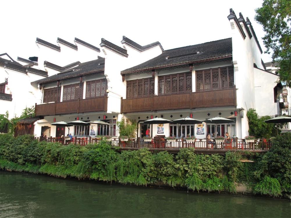终于站到了淮清桥上,脚下就是秦淮河水,向南望去,我坚信眼前这个所在就是桃叶渡了,虽然建筑的顶端已经被辟为水产店铺。