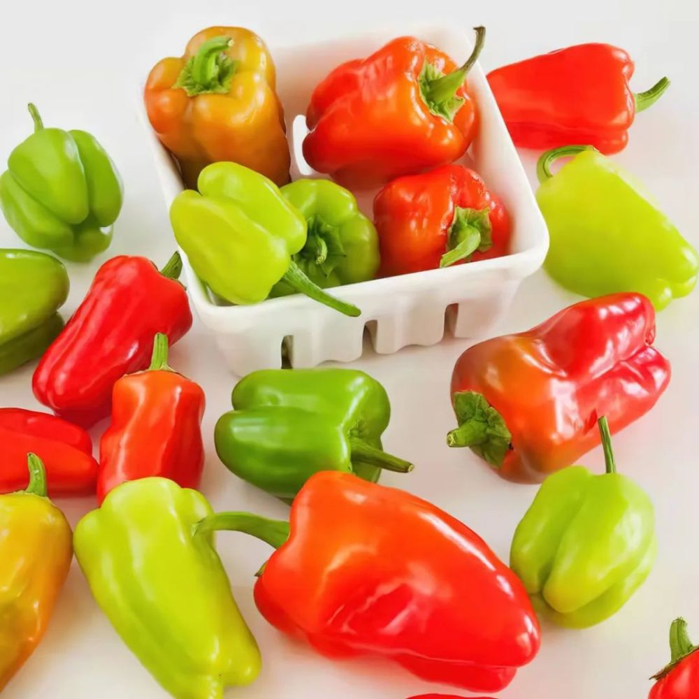 灯笼点心是一款迷你甜椒,果壁厚实,口感香甜,沙拉生食或烹饪烧烤都非常适合,果实从绿色到红色阶段都可以食用。辣椒籽易于处理,只要抓住果柄向下推开,沿着果柄切开,清洗果膛即可。