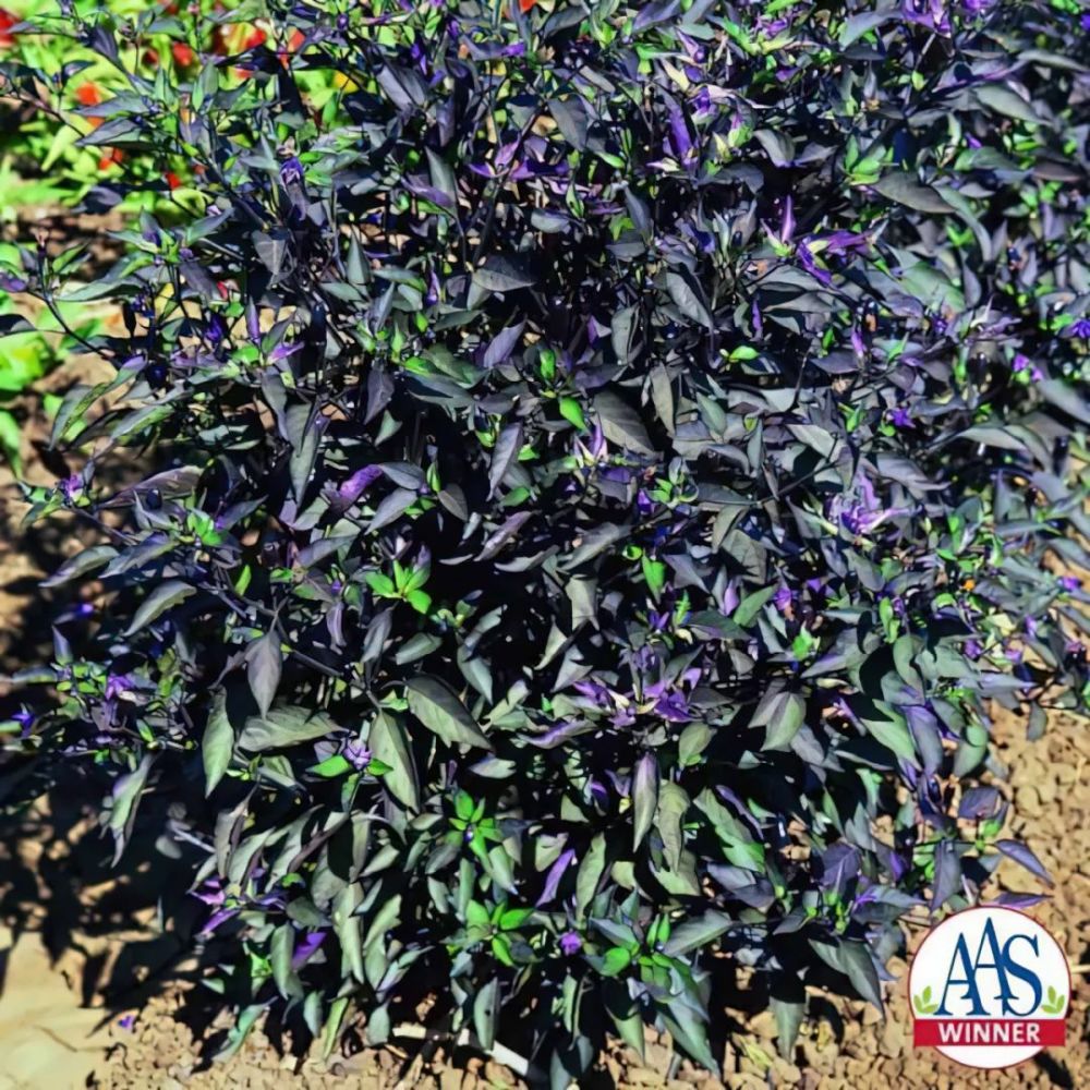 黑橄榄辣椒如它的名字一样,果实呈现出浓郁的色彩,未成熟时果实深紫近黑,成熟后呈现出热烈的红色,色彩大胆浓烈。