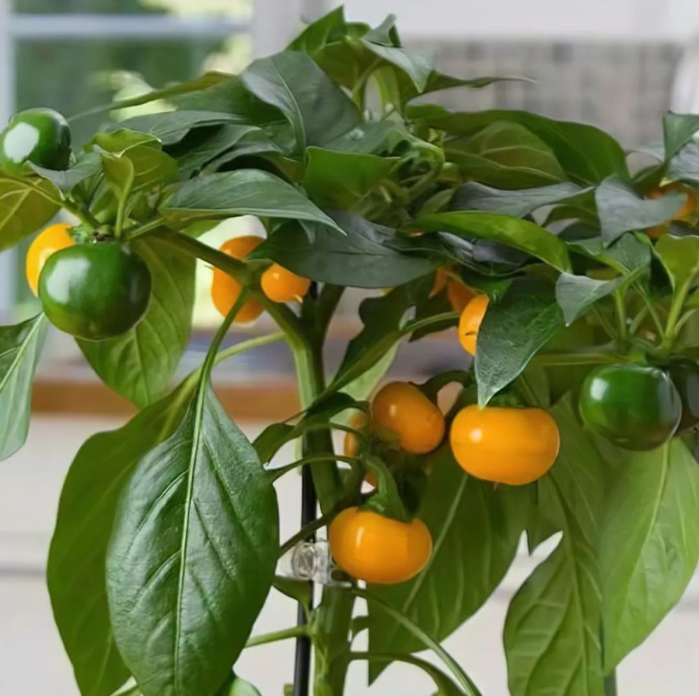 植株高大:耳环辣椒的成熟株高在90cm左右,更适合地栽,盆栽种植需要5加仑左右的容器,长势和坐果表现会更好,养护时可以作必要的支撑。