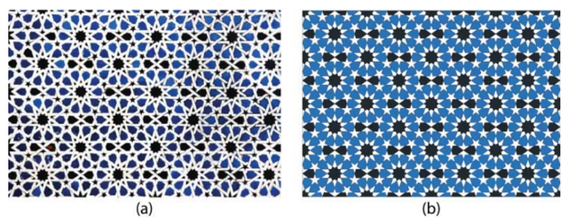 图5。(a)三个12重玫瑰花结---- Alhambra面板;(b)Madrassa Boulnania-菲斯。14世纪。