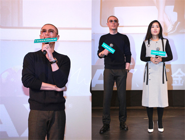 霍建华留着光头颜值也在线,配黑色亮面西装雅痞十足,真有男人味