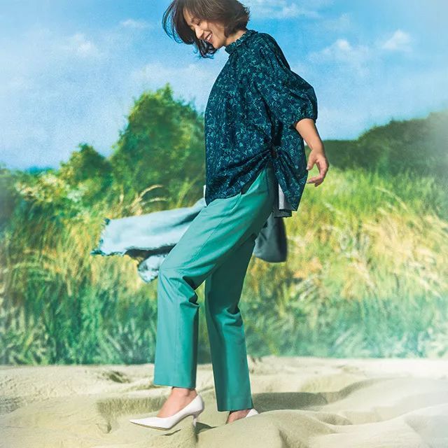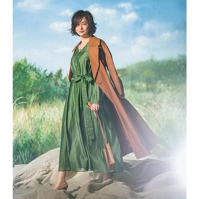 富冈这几套宣传照主打绿色,不同饱和度的绿,这每张都是优雅气质的造型,让你觉得这个春天马上就在眼前。