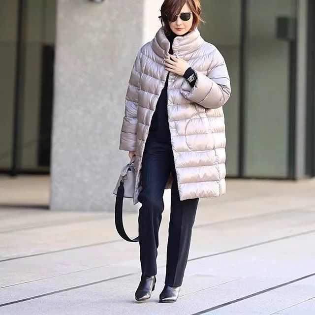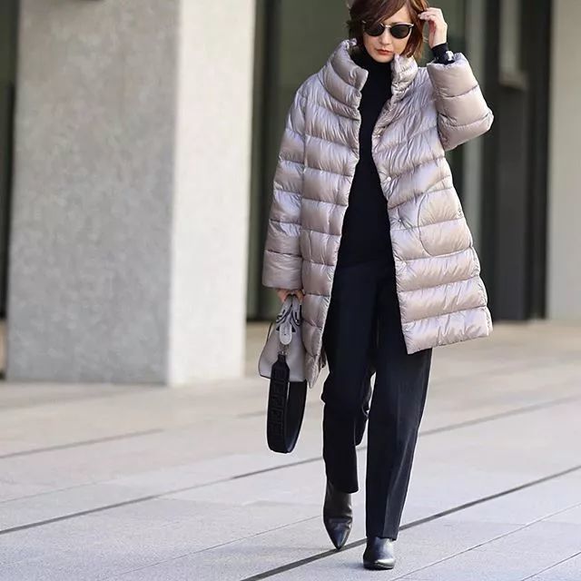 回到富冈的个人INS社交空间,你会发现真的是杂志永远比现实生活快很多,富冈的个人仍旧是以黑色为主,外搭了羽绒服,妥妥的一个职场女老板。