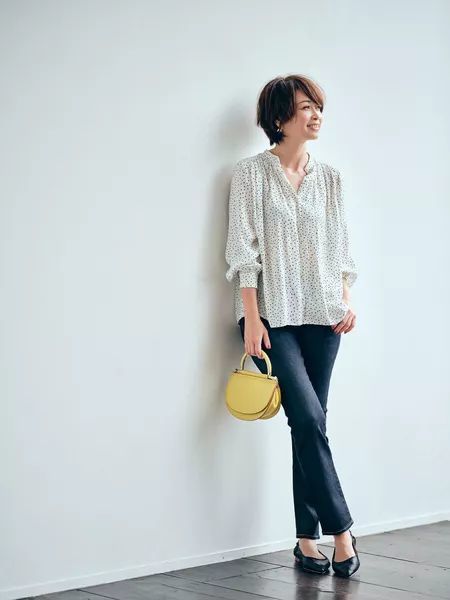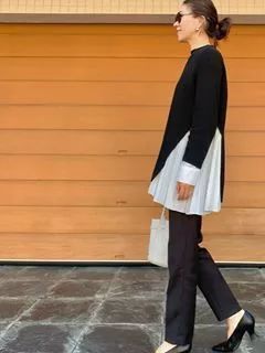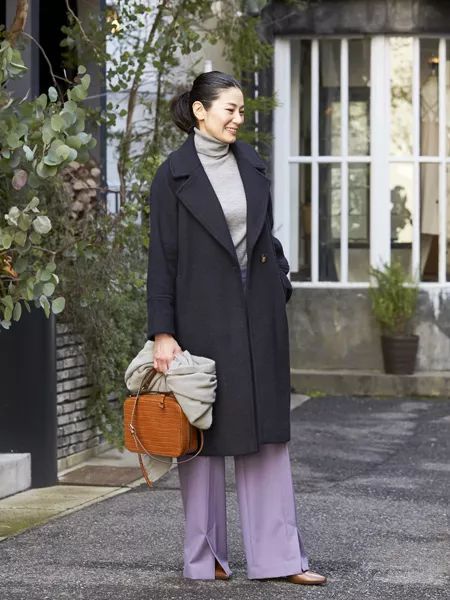 根本久仁子,170的个子在日本也算是高个子了,所以她个人体态稍微有点点前倾。作为Theroy公关的她一直在社交空间秉持着为自己品牌形象做代言,衣服均已纯色为主。上周她的搭配依旧是黑灰白为主,而且也都是之前出现过的,她也算是一衣多穿的践行者了。