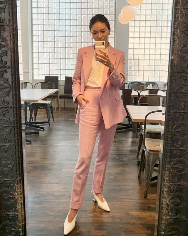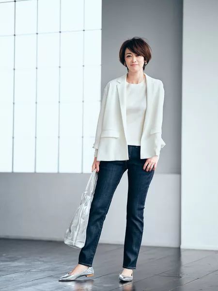 上面Emiri的白色西装也是此次拍摄中的推荐单品,不过我个人建议大家要买西装尤其是白色西装的话,质感还是要硬朗一些,更适合职场。