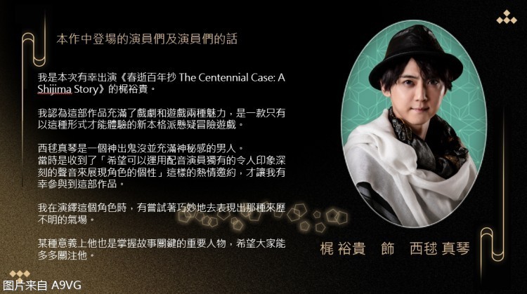 我是本次有幸出演《春逝百年抄 The Centennial Case: A Shijima Story》的梶裕贵。