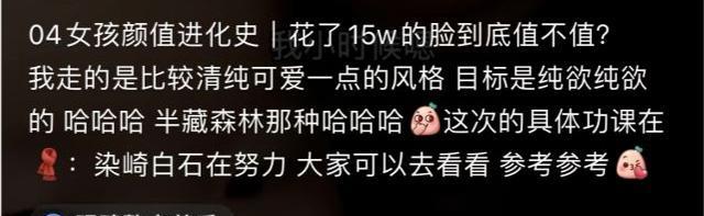 染崎白石大方透露整形的目标是半藏森林:“我走的是比较清纯可爱一点的风格,目标是纯欲纯欲,半藏森林那种。”