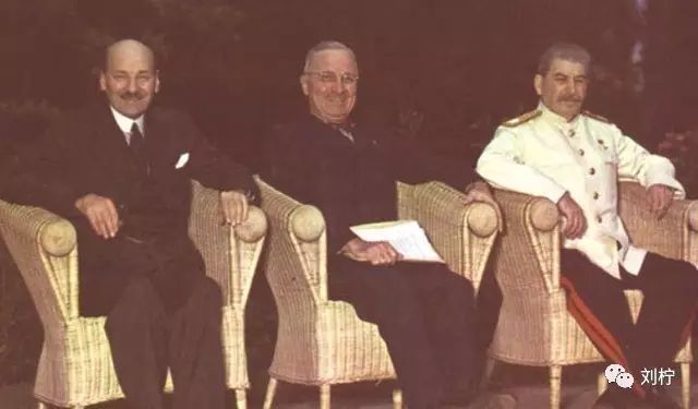 波茨坦会议后期的一张照片,三巨头换成了艾德礼、杜鲁门、斯大林