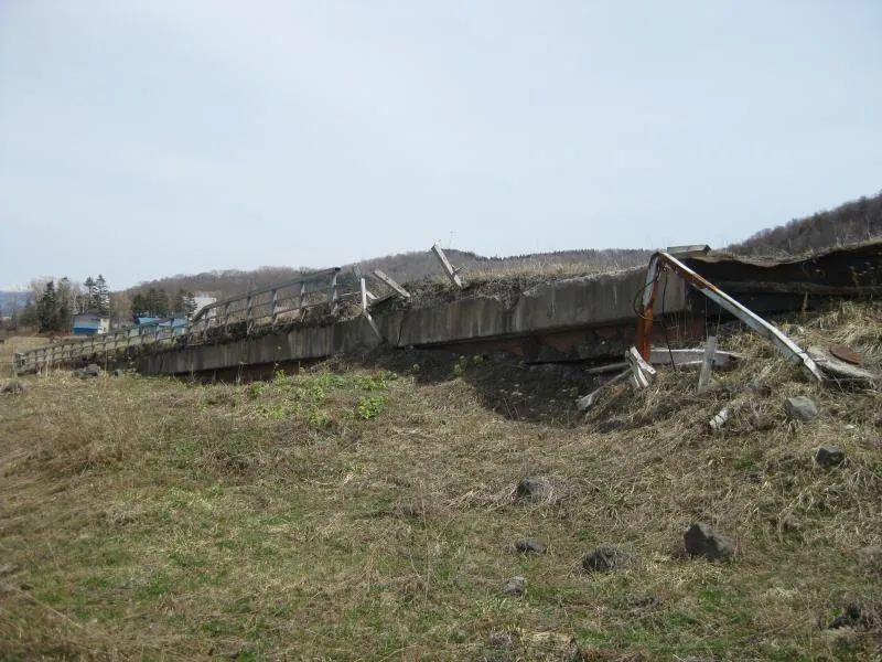 ▲ 有珠山下被火山喷发毁坏的建筑(胡俊凯摄)