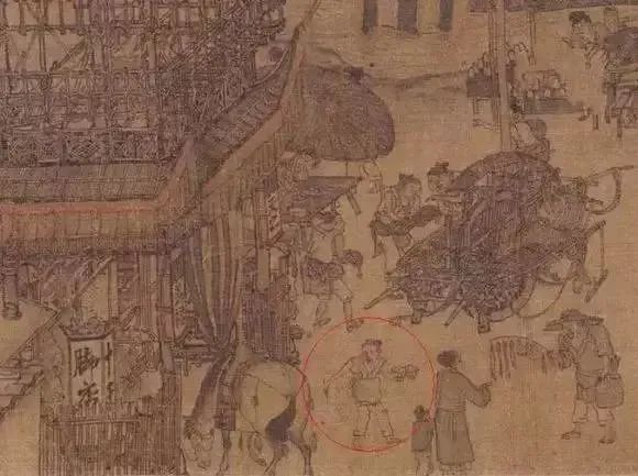 ?:《清明上河图》,图中一名正在送外卖的快递小哥