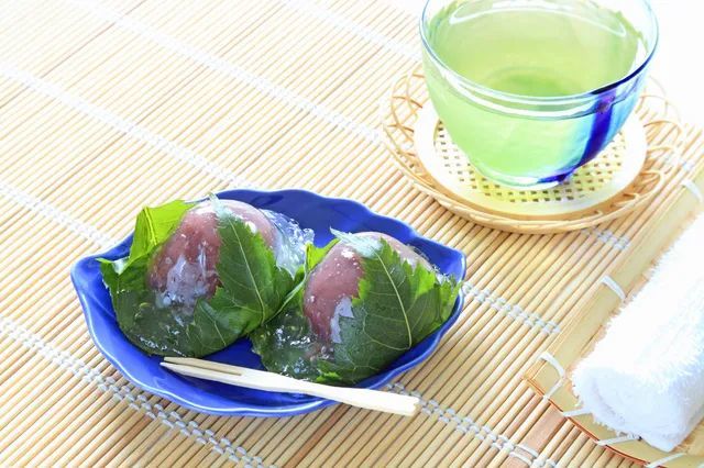 柏饼是用上新粉(日本米的米粉)做成外皮,里面包红豆馅的和菓子,和粽子不同,柏饼外面包的是橡树的叶子。