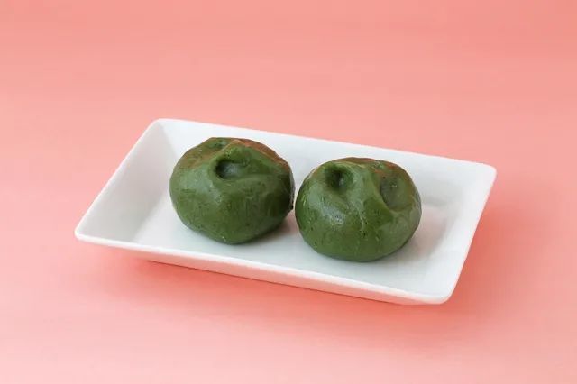 这是另一种包红豆内馅的麻糬,由上新粉(日本米做成的米粉)和艾草叶做成。