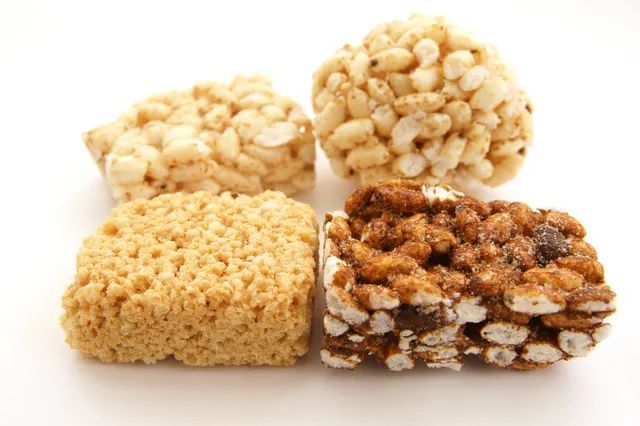 将米和小麦烘烤后,在干燥之前裹上一层糖浆。和我们的街头爆米花相似。