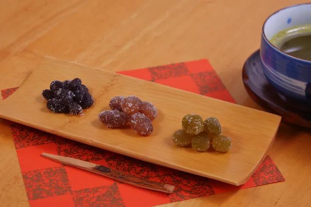 各式各样的豆类像红豆或是花豆,煮熟后再撒上糖粉。