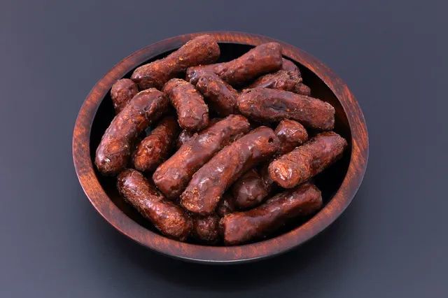 花林糖是用蛋、糖和面粉做成的条状零食,油炸后再裹上糖浆。