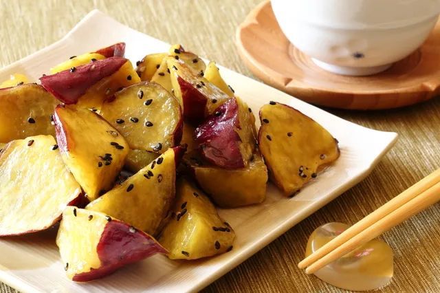 拔丝地瓜的作法是将地瓜切块或切片油炸后,再裹上糖浆及撒上黑芝麻。(这道拔丝地瓜在日本竟然也算和果子_( 3」∠)_)