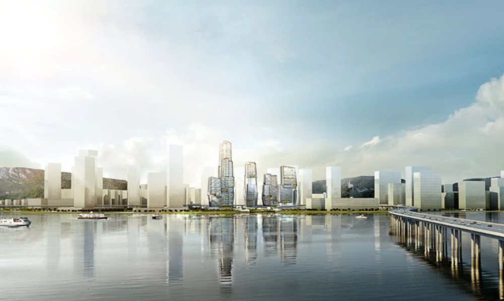 在温州新江城,靠近长江三角洲的经济增长区,世贸中心是瓯北三江城市化改造项目的一部分,功能多样,这座由办公楼、商店、住宅、住宿和文化服务的塔楼组成的综合体以其雕塑形式出现在一个大型公园中,其中大部分对公众开放,构成了主要的连接元素,并与河滨和谐地互动。