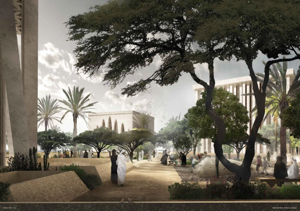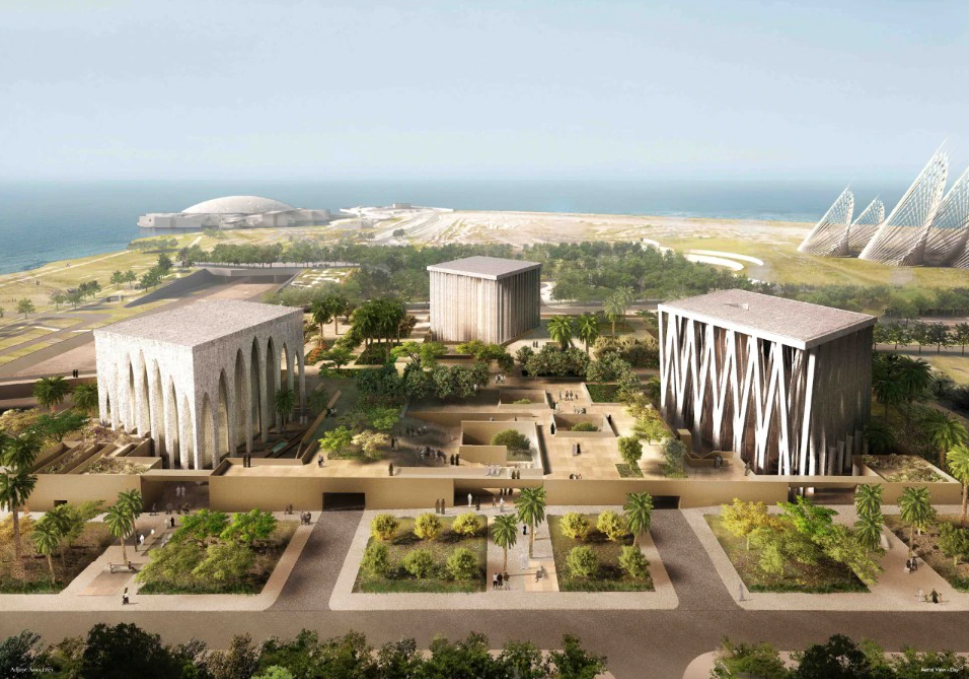 建筑群旨在传达宗教间对话、和平共处和文化交流的价值观,包括三座主要一神论宗教清真寺、犹太教堂和教堂的礼拜建筑和第四个不隶属于任何宗教的关系空间。这些建筑以纯粹的体量脱颖而出,每一个都有不同的方向,从一个公共中央平台升起,公共绿地空间具有物理和隐喻的连接功能。