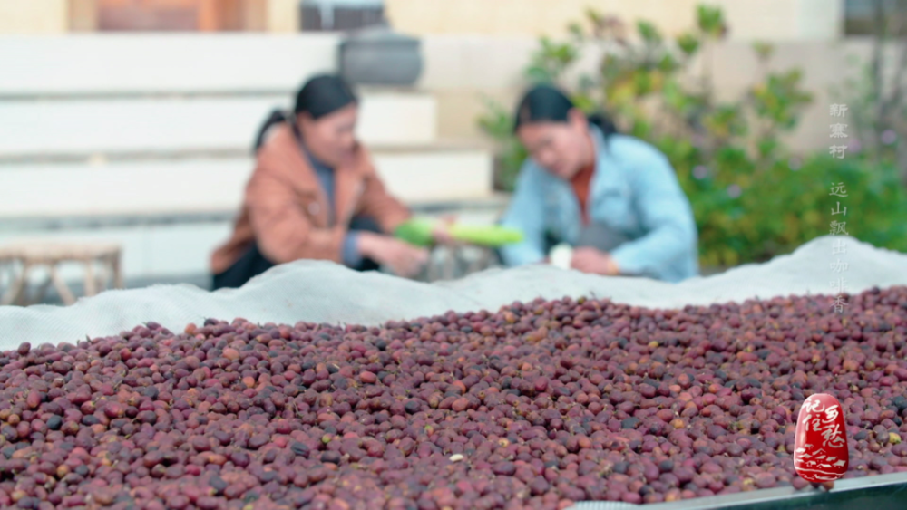 山上长满咖啡树,院里晒满咖啡豆,村里飘着咖啡香。这是云南省保山市新寨村最常见的景象。