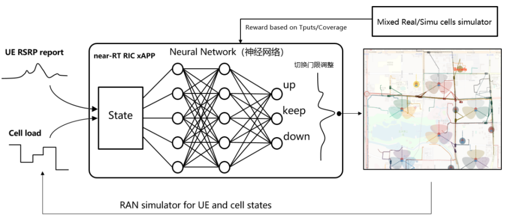 案例中,集成了人工智能的非实时RIC,通过学习推理,把算法推送到近实时RIC平台。近实时RIC通过E2接口,控制RAN的功能组件,从而对RAN进行精确、合理的调度和控制。准确来说,控制的目标就是切换(HO)门限,从而让UE(用户终端)进行更合理的切换,大幅降低掉话率,提升用户的网络体验。