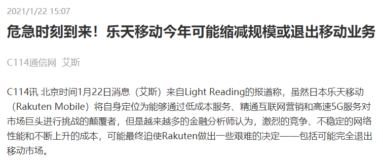 之前搞Open RAN最风生水起的日本乐天移动(Rakuten Mobile),近期也传出了不少的负面新闻。