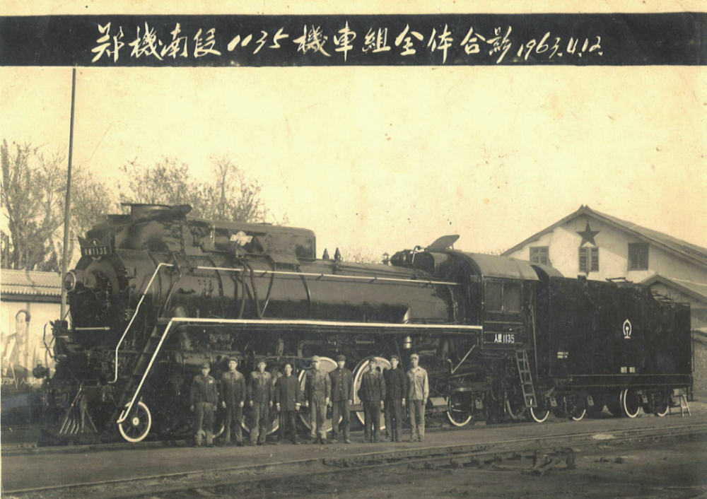 巴流海年轻时在原郑州铁路局郑州机务段南段同机车合影